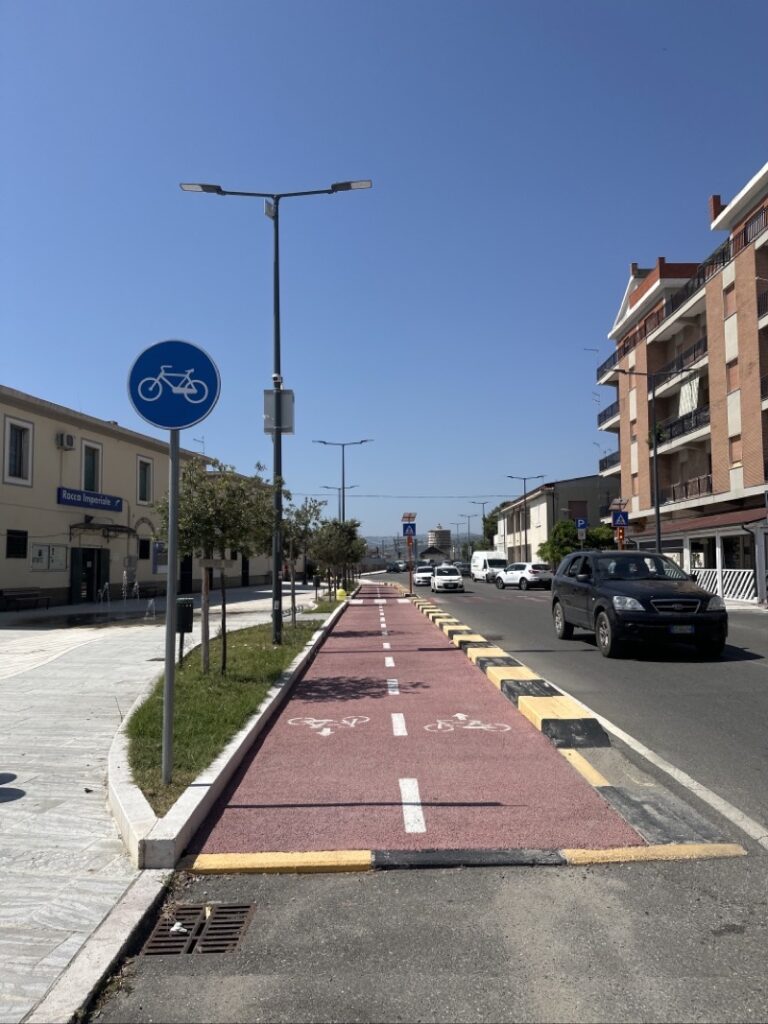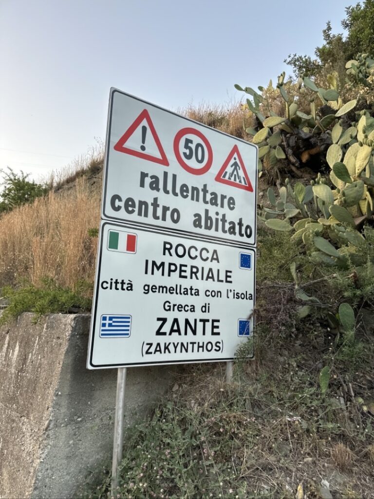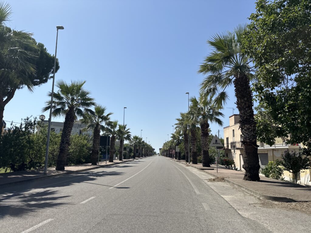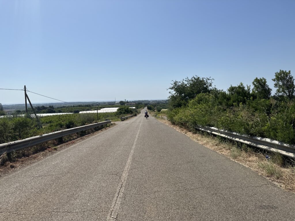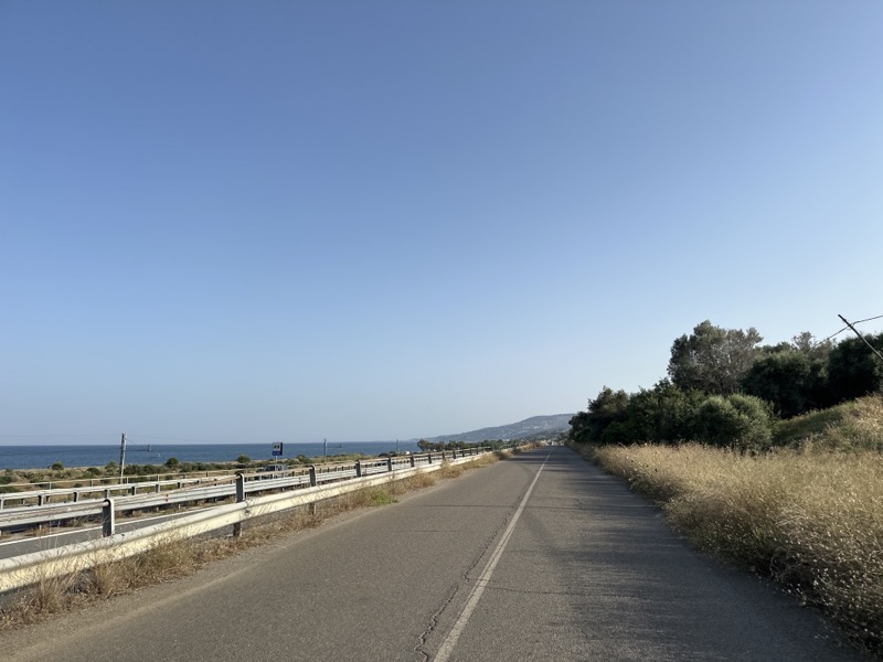 Nova Siri Scalo besticht durch seine Palmenallee, hat aber aus unserer Sicht sonst nicht viel zu bieten, außer dass hier die Grenze zwischen der Basilikata und Kalabrien verläuft und ein Zitronenhain den anderen ablöst. Leicht verunsichert sind wir aufgrund der Beschilderung, wonach das Radfahren auf der Strada Statale 106 Ionica verboten ist. Danach stellt sich heraus, dass wir sie garnicht befahren müssen, sondern auf netten, schmalen Nebenstraßen bleiben können.