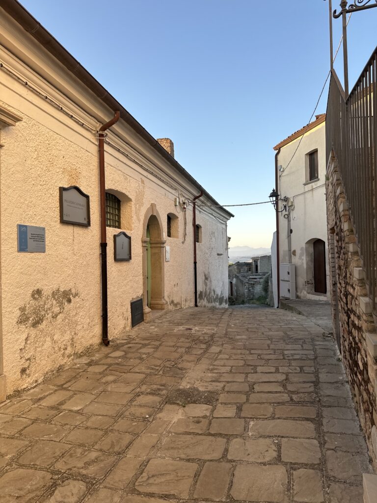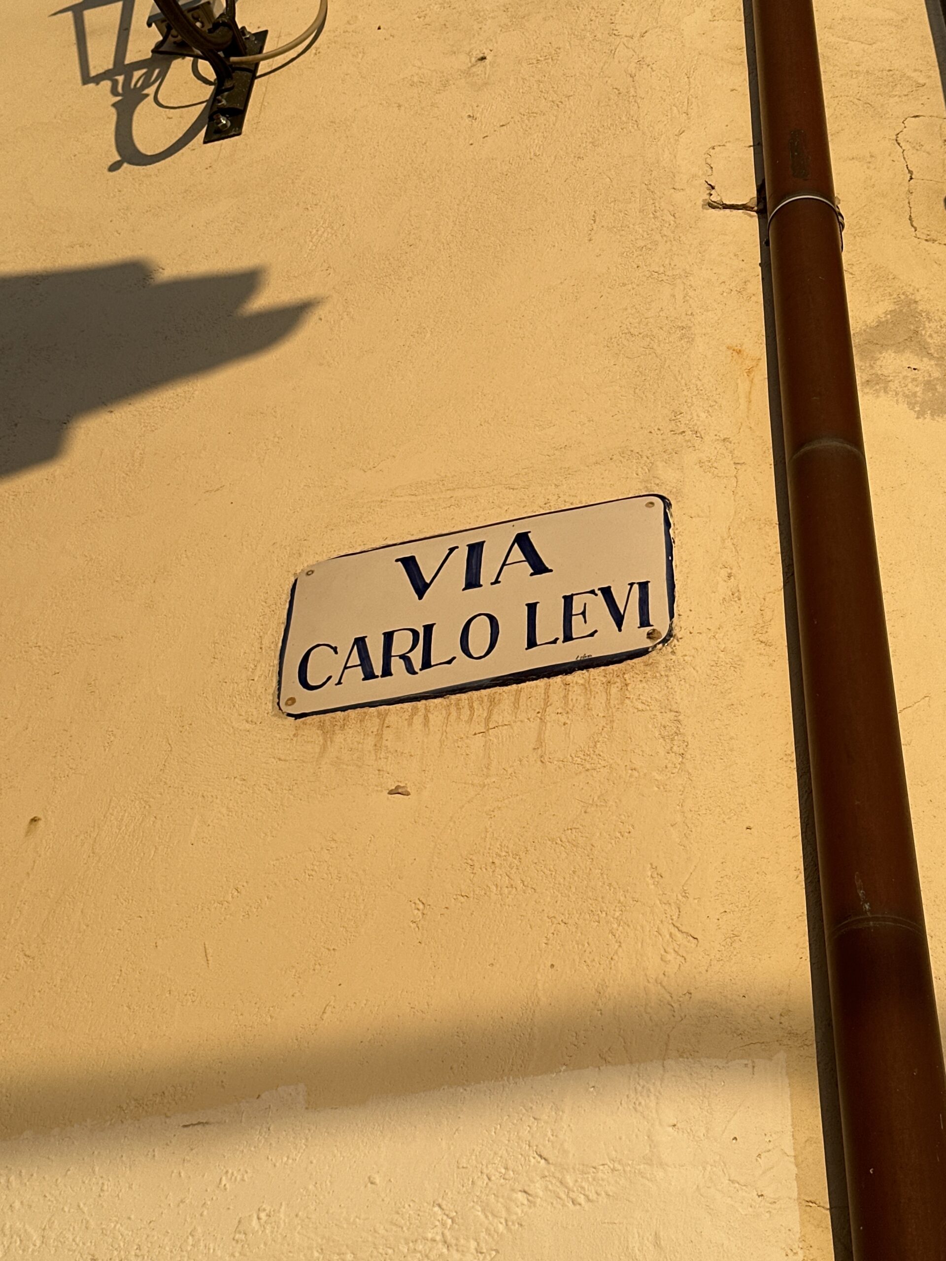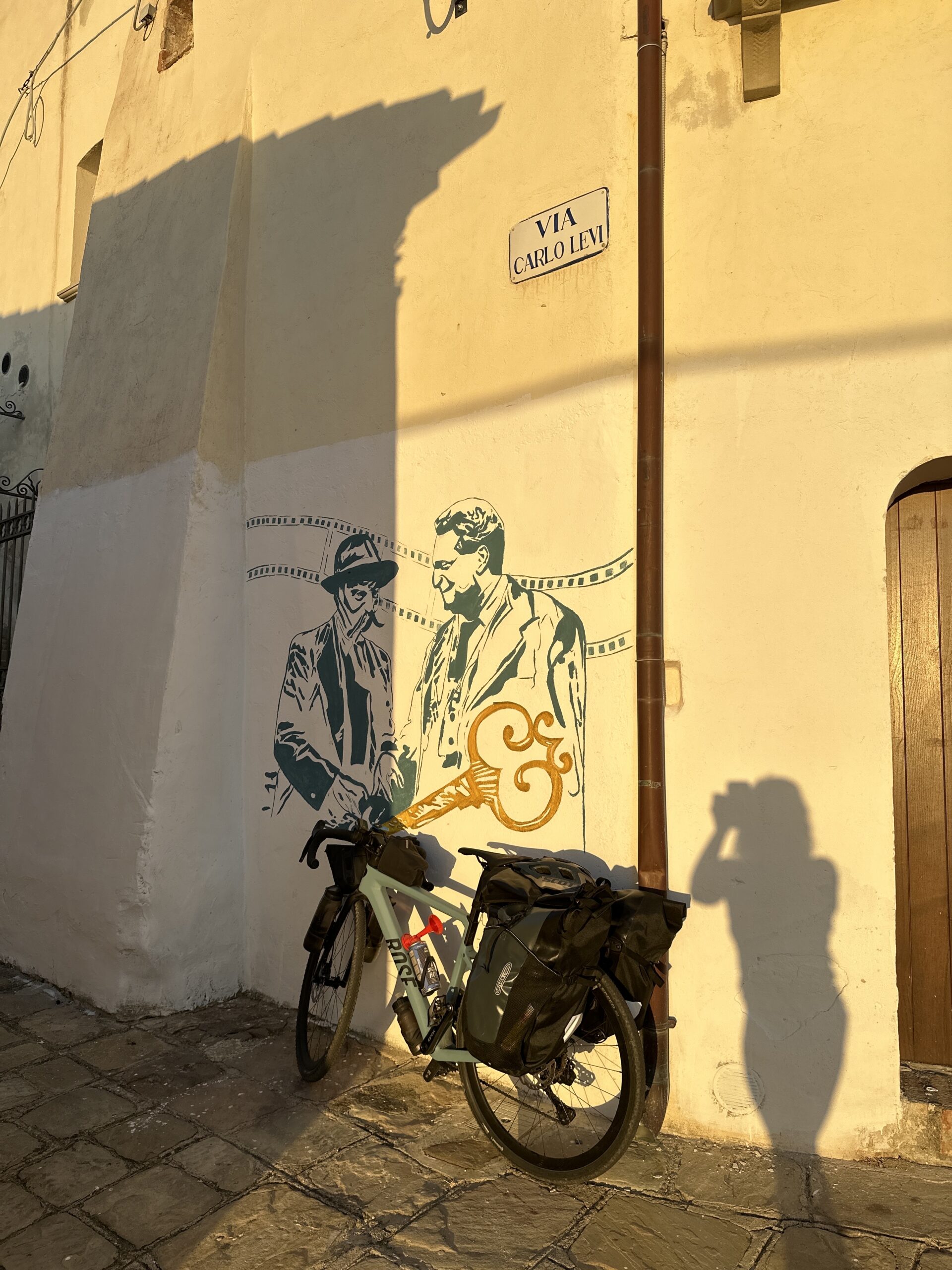 Harald wartet wieder einmal geduldig, bis ich alle Fotos gemacht habe. Das Haus von Donna Caterina, die Polizeikaserne und die Straße, die nach Carlo Levi benannt wurde…