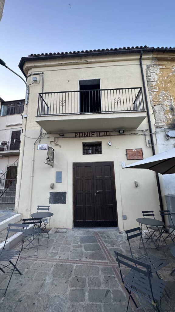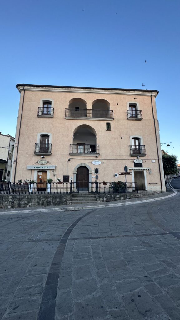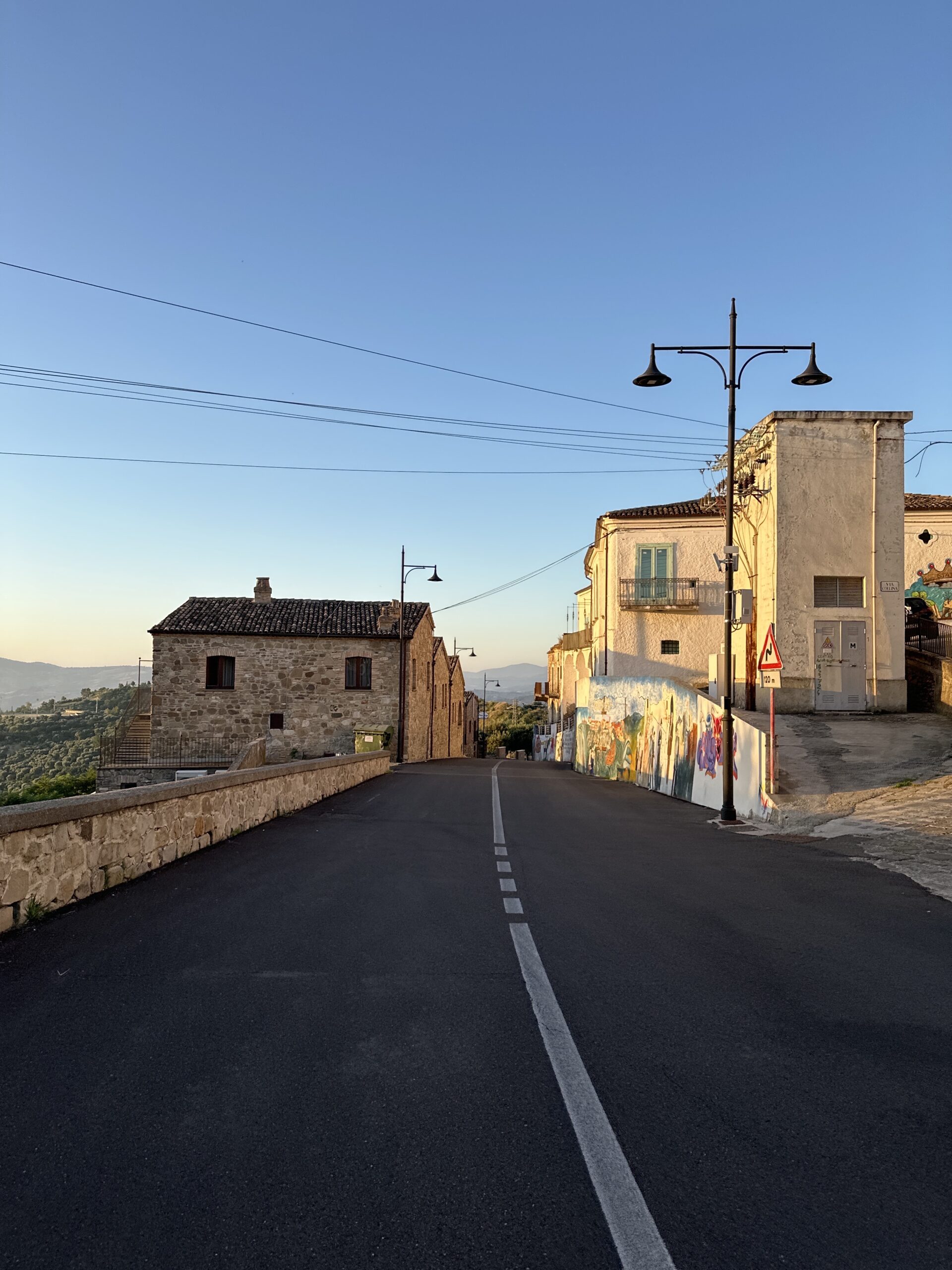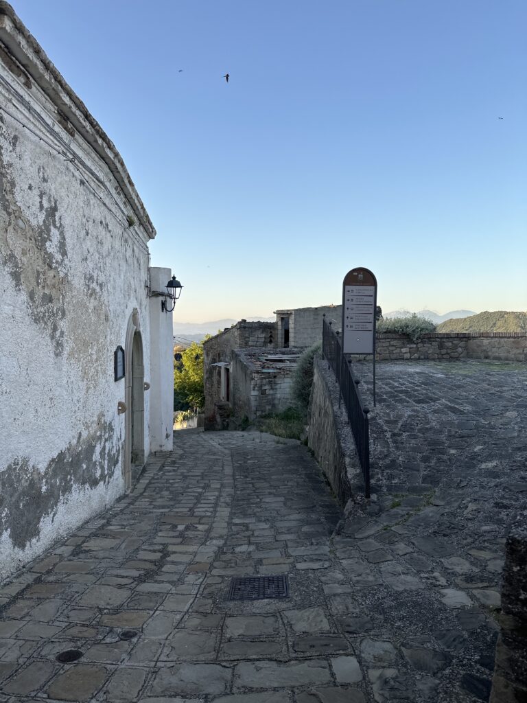 Harald wartet wieder einmal geduldig, bis ich alle Fotos gemacht habe. Das Haus von Donna Caterina, die Polizeikaserne und die Straße, die nach Carlo Levi benannt wurde…